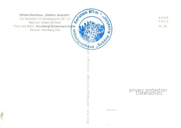Hornberg_Schwarzwald Hoehengasthaus Schoene Aussicht mit Karlstein Hornberg Schwarzwald postalisch nicht gelaufen nach 1965 Erhaltung siehe scans [FriedD77] Frierer