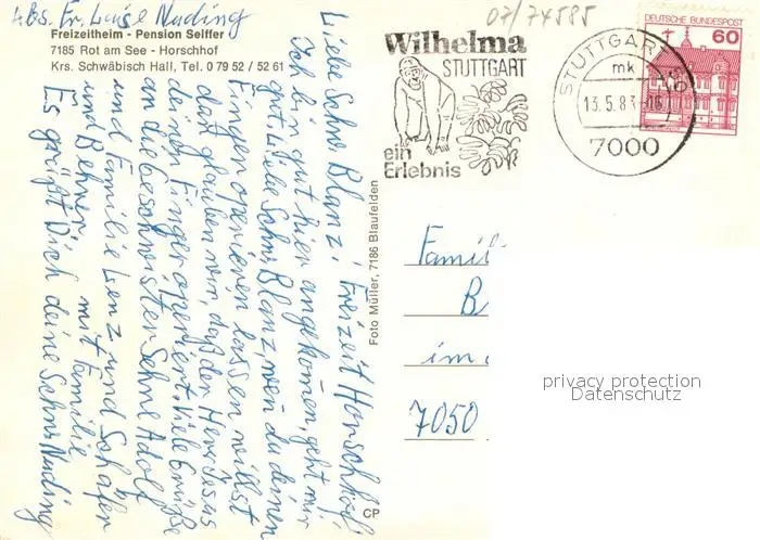 Horschhof_Rot_am_See Freizeitheim Pension Seiffer Landschaftspanorama postalisch gelaufen 1983 Erhaltung siehe scans [FriedD77] Frierer