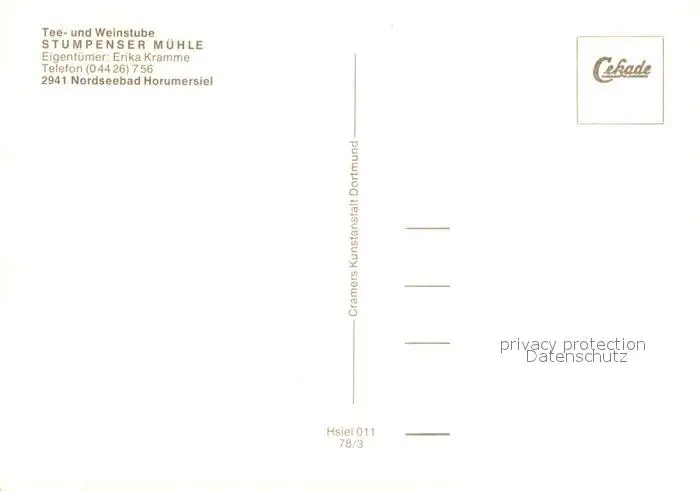 Horumersiel Tee und Weinstube Stumpenser Muehle Nordseebad Horumersiel postalisch nicht gelaufen 1978 Erhaltung siehe scans [FriedD77] Frierer