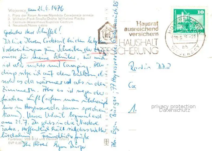 Hoyerswerda Platz der Roten Armee Wilh Pieck Strasse Centrum Warenhaus Neustadt Hoyerswerda postalisch gelaufen 1976 Erhaltung siehe scans [WerneD78] WernPID7