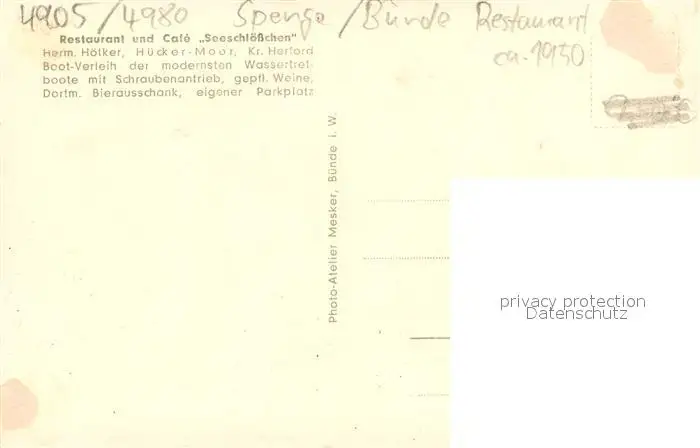 Huecker-Aschen Huecker Moor Bootsverleih Restaurant-Seeschloesschen Huecker-Aschen postalisch nicht gelaufen 1950 Erhaltung siehe scans [LiesaD40] LiesID40