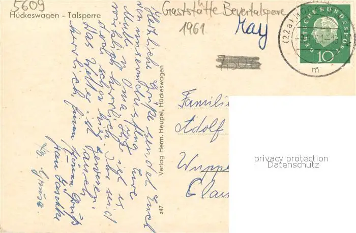 Hueckeswagen Talsperre Gaststaette-Bevertalsperre Segelboot Hueckeswagen postalisch gelaufen 1961 Erhaltung siehe scans [LiesaD40] LiesID40