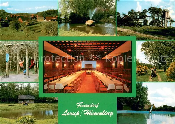 Huemmling_Lorup Kategorie Alte Ansichtskarten Postkarten kr32428 Huemmling_Lorup Feriendorf Loruper Tanzdiele Kinderspielplatz Badesee postalisch nicht gelaufen nach 1965 Erhaltung siehe scans [FriedD77]