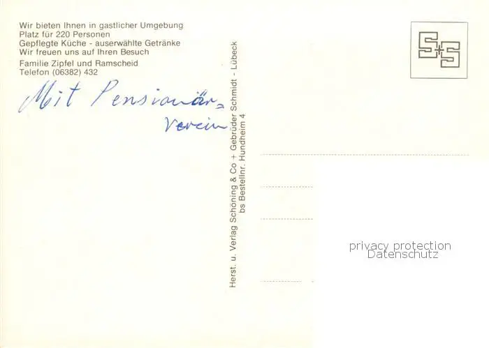 Hundheim_Offenbach-Hundheim Speiserestaurant Zur Einsamkeit Gastraum Park Hundheim postalisch nicht gelaufen nach 1965 Erhaltung siehe scans [WerneD78] WernPID7
