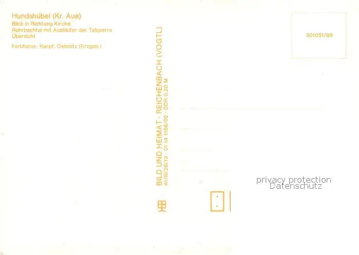 Hundshuebel Blick Richtung Kirche Rohrbachtal mit Auslaeufer der Talsperre Hundshuebel postalisch nicht gelaufen 1989 Erhaltung siehe scans [FriedD77] Frierer