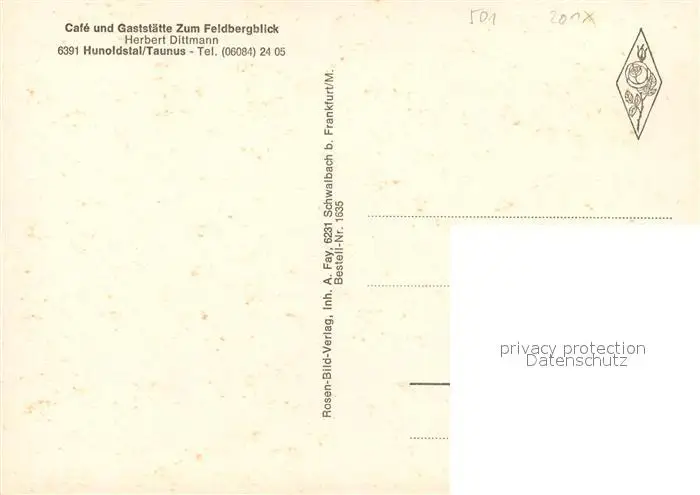 Hunoldstal Kategorie Alte Ansichtskarten Postkarten bx83010 Hunoldstal Cafe und Gaststaette Zum Feldbergblick Gastraum Panorama Hunoldstal postalisch nicht gelaufen Erhaltung siehe scans [WerneD78]