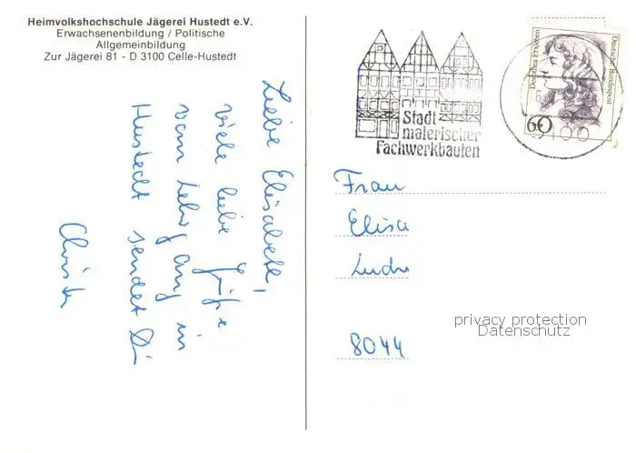 Hustedt_Celle Heimvolkshochschule Jaegerei Justedt Details Hustedt_Celle postalisch gelaufen nach 1965 Erhaltung siehe scans [WerneD78] WernPID7