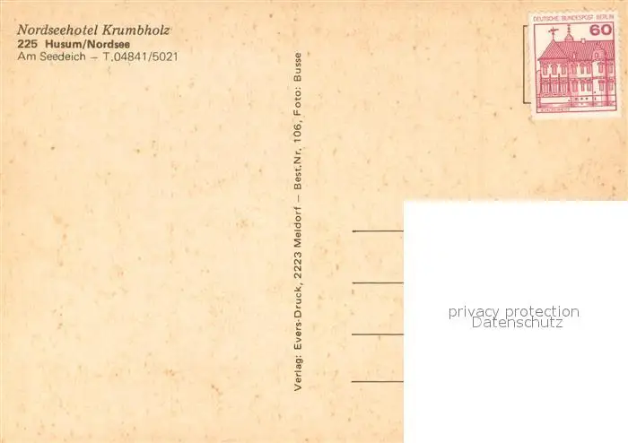 Husum__Nordfriesland Nordseehotel Krumbholz Aussenansicht postalisch nicht gelaufen nach 1965 Erhaltung siehe scans [LiesaD40] LiesID40