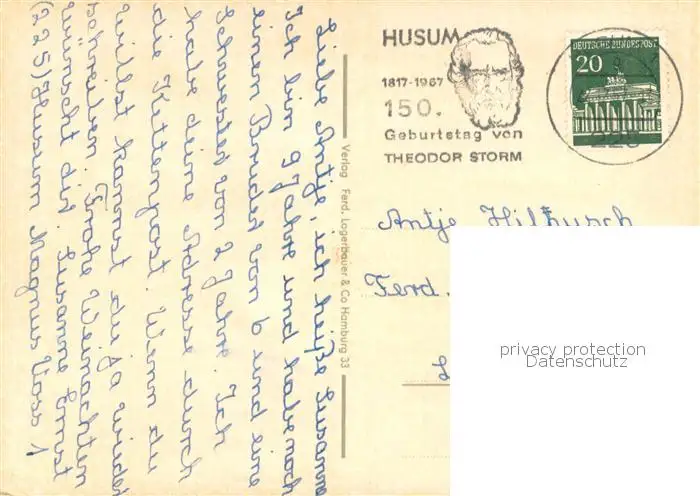 Husum__Nordfriesland Theodor Storm Gedenkstaetten postalisch gelaufen 1967 Erhaltung siehe scans [FriedD77] Frierer