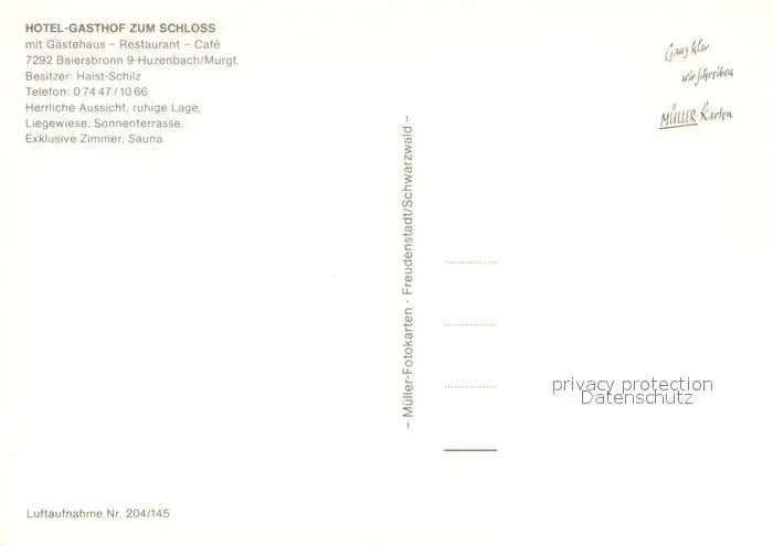 Huzenbach Hotel Gasthof zum Schloss Fliegeraufnahme Huzenbach postalisch nicht gelaufen nach 1965 Erhaltung siehe scans [WerneD78] WernPID7