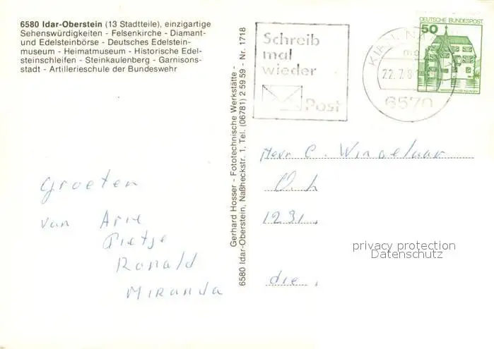 Idar-Oberstein Felsenkirche Diamant- und Edelsteinboerse Idar-Oberstein postalisch gelaufen 1981 Erhaltung siehe scans [LiesaD40] LiesID40