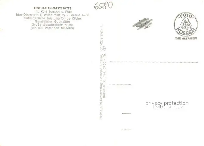 Idar-Oberstein Festhallen-Gaststaette Idar-Oberstein postalisch nicht gelaufen 1921-1965 Erhaltung siehe scans [LiesaD40] LiesID40