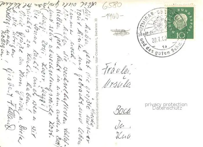 Idar-Oberstein Panorama Stadt der Edelsteine Jugendherberge Bruecke Klotzbergkaserne Felsenkirche Diamantschleiferei Idar-Oberstein postalisch gelaufen 1960 Erhaltung siehe scans [FriedD77] Frierer