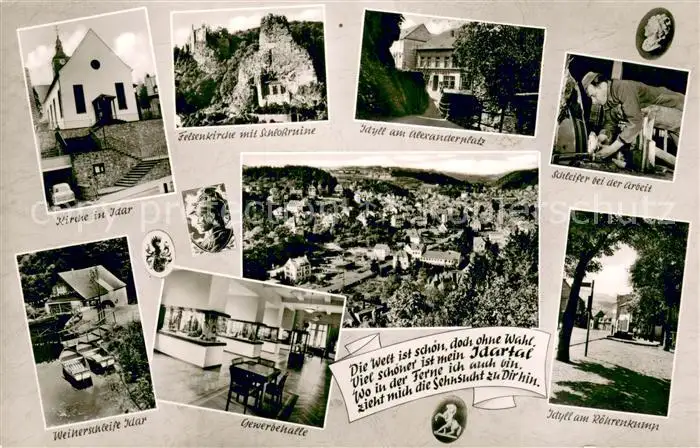 Idar-Oberstein Schleifer-bei-d. Arbeit Felsenkirche Schlossruine Gewerbehalle Idar-Oberstein postalisch nicht gelaufen 1921-1965 Erhaltung siehe scans [LiesaD40] LiesID40