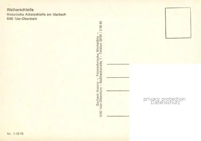 Idar-Oberstein Weiherschleife Achatschleife Idar-Oberstein postalisch nicht gelaufen nach 1965 Erhaltung siehe scans [NatalD47] NataID47