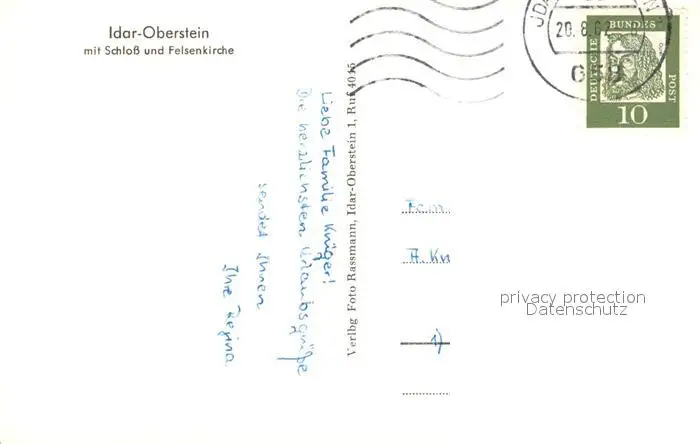 Idar-Oberstein mit Schloss und Felsenkirche Idar-Oberstein postalisch gelaufen 1962 Erhaltung siehe scans [FriedD77] Frierer