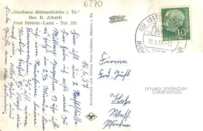 Idstein Gasthaus Huehnerkirche Idstein postalisch gelaufen 1957 Erhaltung siehe scans [WerneD78] WernPID7