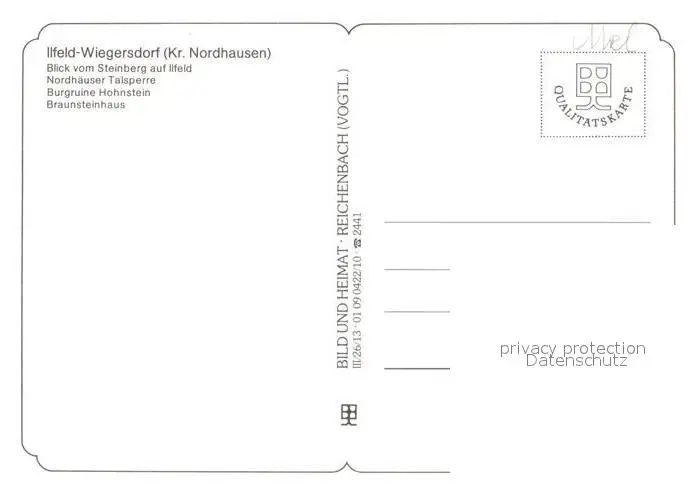 Ilfeld_Suedharz Blick vom Steinberg Nordhaeuser Talsperre Burgruine Hohnstein Braunsteinhaus Ilfeld Suedharz postalisch nicht gelaufen nach 1965 Erhaltung siehe scans [WerneD78] WernPID7