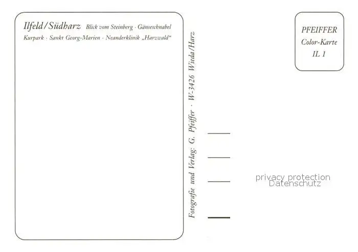 Ilfeld_Suedharz Kurpark Sankt Georg Marien Neanderklinik Harzwald Gaenseschnabel Ilfeld Suedharz postalisch nicht gelaufen nach 1965 Erhaltung siehe scans [KathaD81] Kathoren