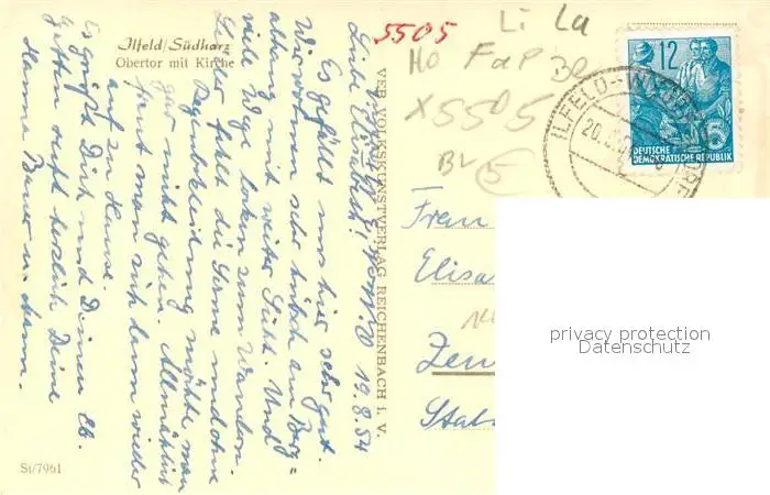 Ilfeld_Suedharz Obertor mit Kirche Ilfeld Suedharz postalisch gelaufen 1954 Erhaltung siehe scans [WerneD78] WernPID7