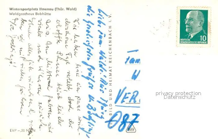 Ilmenau_Thueringen Wintersportplatz Thueringer Wald Waldgasthaus Bobhuette Winterlandschaft Ilmenau Thueringen postalisch gelaufen 1969 Erhaltung siehe scans [FriedD77] Frierer