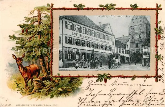 AK / Ansichtskarte Ilshofen Post u. Thor m. Kutsche Gespann Ilshofen
