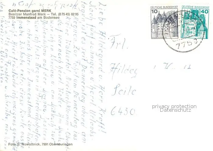 Immenstaad_Bodensee Cafe Pension garni Merk Immenstaad_Bodensee postalisch gelaufen nach 1965 Erhaltung siehe scans [WerneD78] WernPID7