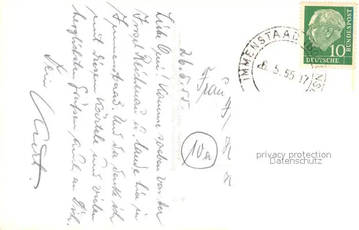 Immenstaad_Bodensee Kategorie Alte Ansichtskarten Postkarten bx87589 Immenstaad_Bodensee Fliegeraufnahme mit Kirche See Alpen Immenstaad_Bodensee postalisch gelaufen 1955 Erhaltung siehe scans [LiesaD40]