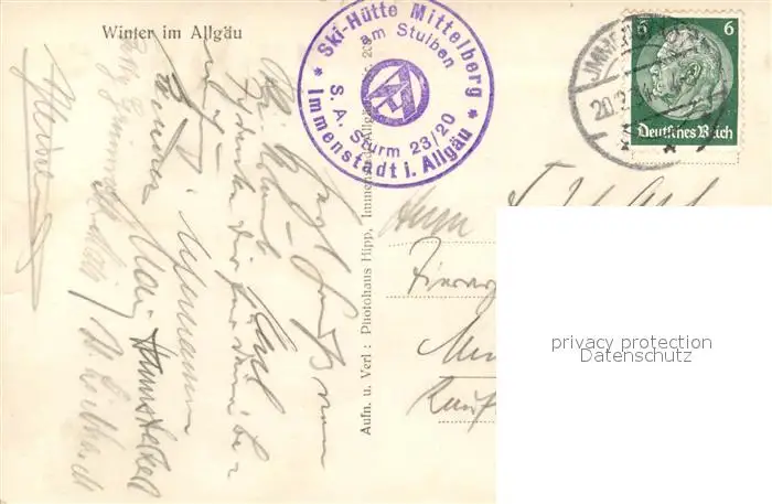 Immenstadt_Allgaeu Alpe Seifenmoos mit Mittelberg und Hochgratgruppe Immenstadt_Allgaeu postalisch gelaufen 1934 Erhaltung siehe scans [WerneD78] WernPID7