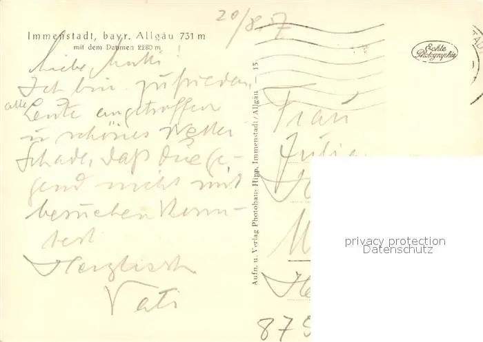 Immenstadt_Allgaeu Ortsansicht mit Kirche mit Blick zum Daumen Allgaeuer Alpen Immenstadt_Allgaeu postalisch gelaufen 1957 Erhaltung siehe scans [FriedD77] Frierer