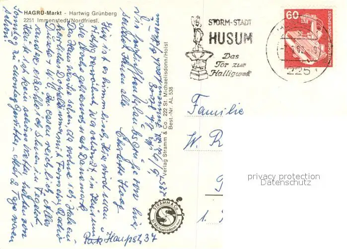 Immenstedt_Nordfriesland Hagro Markt Gedenkstein Park Immenstedt_Nordfriesland postalisch gelaufen 1982 Erhaltung siehe scans [FriedD77] Frierer