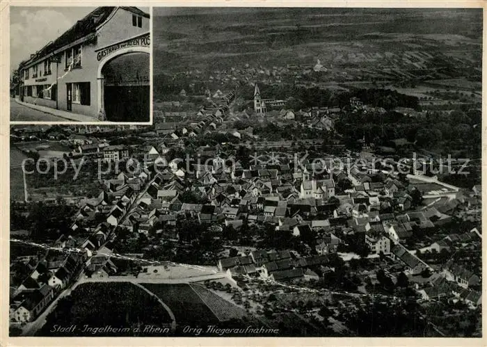 AK / Ansichtskarte Ingelheim_Rhein Original Fliegeraufnahme althistorische Gaststaette Zur Alten Post Ingelheim Rhein