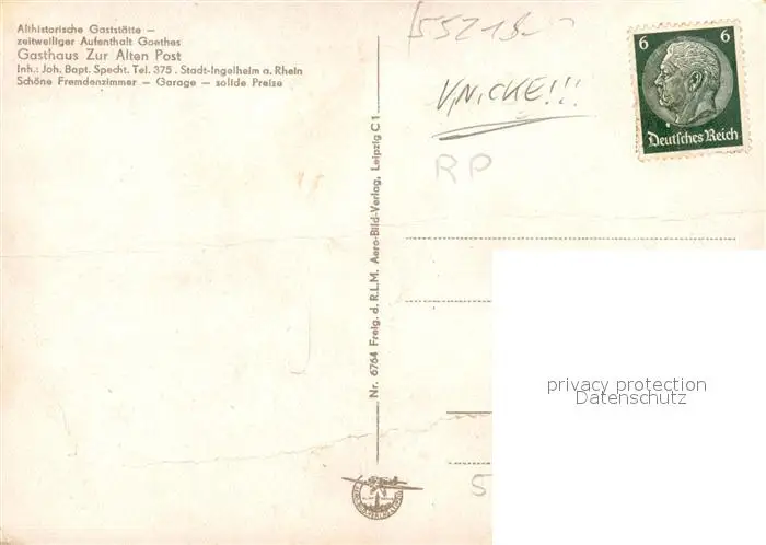 Ingelheim_Rhein Original Fliegeraufnahme althistorische Gaststaette Zur Alten Post Ingelheim Rhein postalisch nicht gelaufen 1921-1965 Erhaltung siehe scans [FriedD77] Frierer