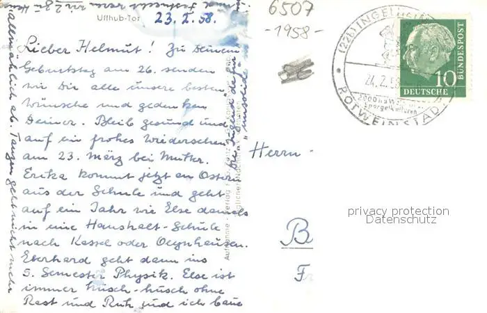 Ingelheim_Rhein Uffhub Tor Ingelheim Rhein postalisch gelaufen 1958 Erhaltung siehe scans [FriedD77] Frierer
