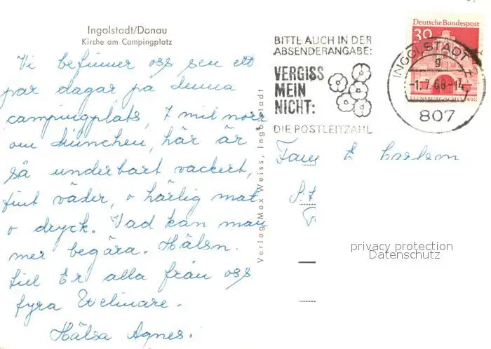 Ingolstadt_Donau Campingplatz Auwaldsee Kirche Seepartie Ingolstadt_Donau postalisch gelaufen 1968 Erhaltung siehe scans [WerneD78] WernPID7