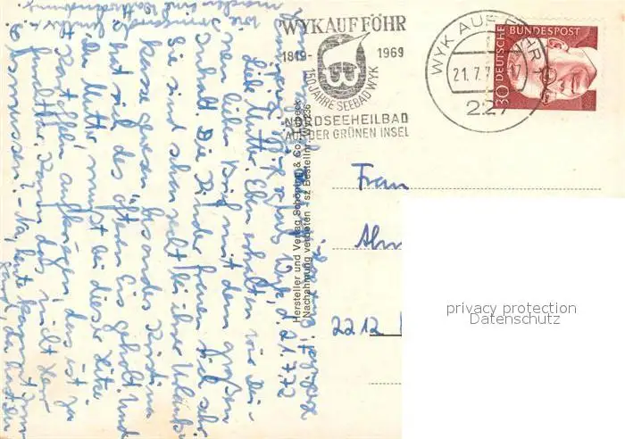 Insel_Foehr Fliegeraufnahme Wyk Strand Friesinnen Strand Faehranleger Goting-Kliff Insel_Foehr postalisch gelaufen 1972 Erhaltung siehe scans [LiesaD40] LiesID40