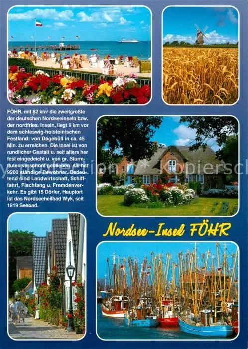 AK / Ansichtskarte Insel_Foehr Strand Promenade Felder Windmuehle Friesenhaus Ortsmotiv Fischkutter Hafen Insel_Foehr