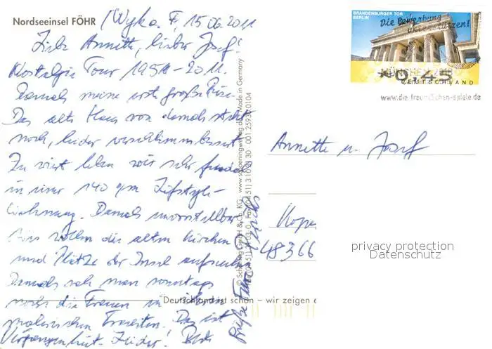 Insel_Foehr Strand Promenade Felder Windmuehle Friesenhaus Ortsmotiv Fischkutter Hafen Insel_Foehr postalisch gelaufen 2011 Erhaltung siehe scans [FriedD77] Frierer