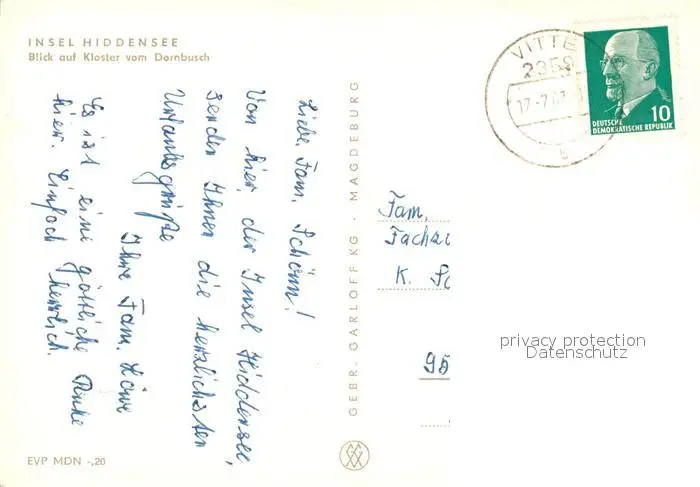 Insel_Hiddensee Blick auf Kloster vom Dornbusch Insel Hiddensee postalisch gelaufen 1982 Erhaltung siehe scans [WerneD78] WernPID7