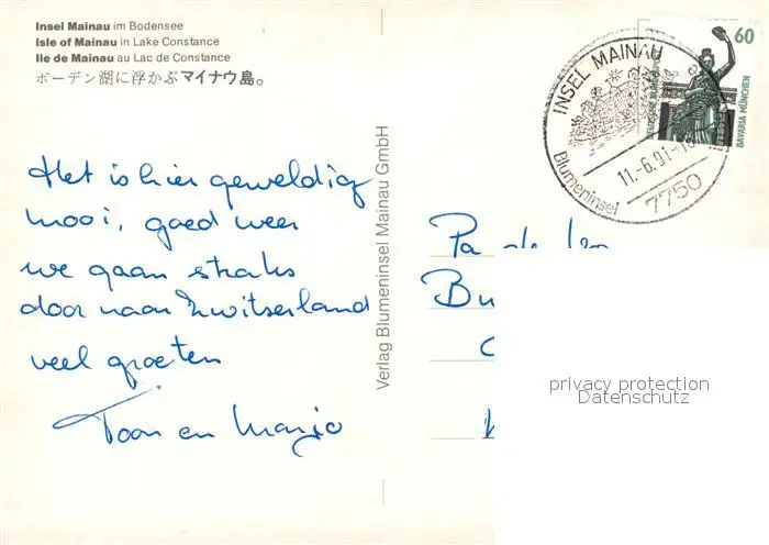 Insel_Mainau Fliegeraufnahme Insel Mainau postalisch gelaufen 1991 Erhaltung siehe scans [WerneD78] WernPID7