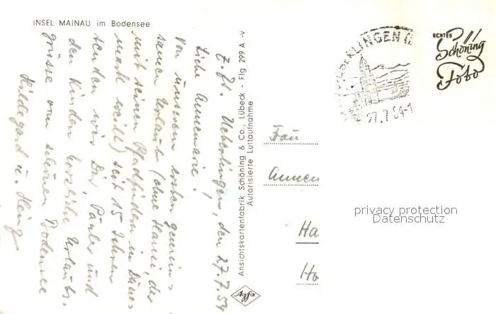 Insel_Mainau Fliegeraufnahme Insel Mainau postalisch gelaufen 1954 Erhaltung siehe scans [FriedD77] Frierer