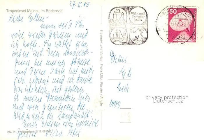 Insel_Mainau Fliegeraufnahme Insel Mainau postalisch gelaufen 1980 Erhaltung siehe scans [WerneD78] WernPID7