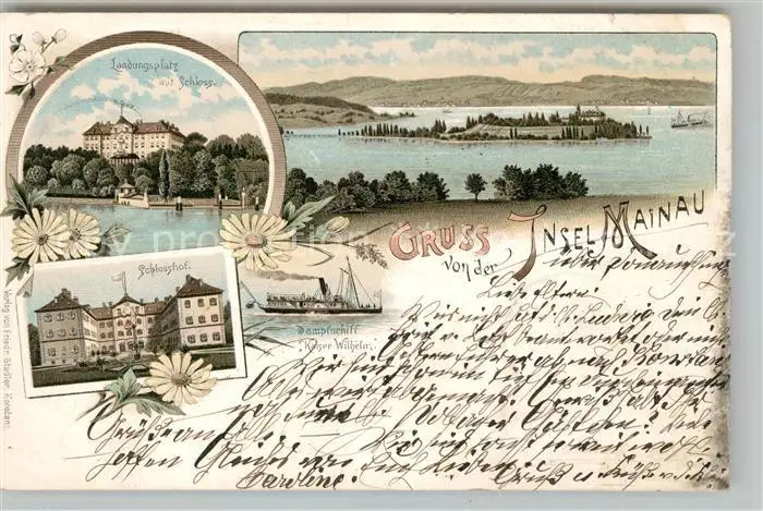 Insel_Mainau Landungsplatz Schloss Schlosshof Insel Mainau postalisch gelaufen 1897 Erhaltung siehe scans [KathaD81] Kathoren