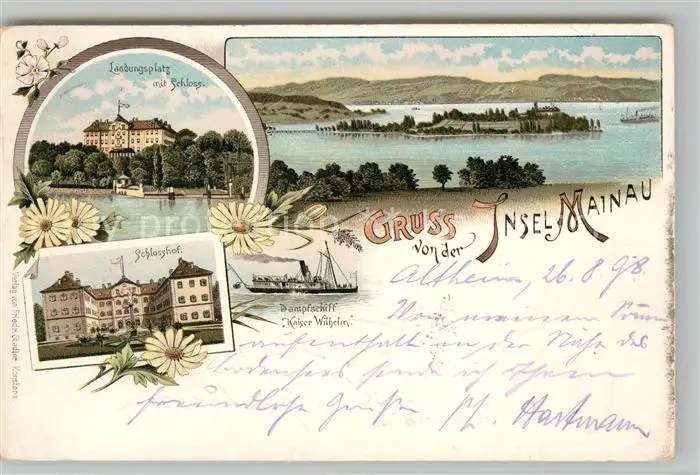 Insel_Mainau Landungsplatz Schloss Schlosshof Insel Mainau postalisch gelaufen 1899 Erhaltung siehe scans [KathaD81] Kathoren