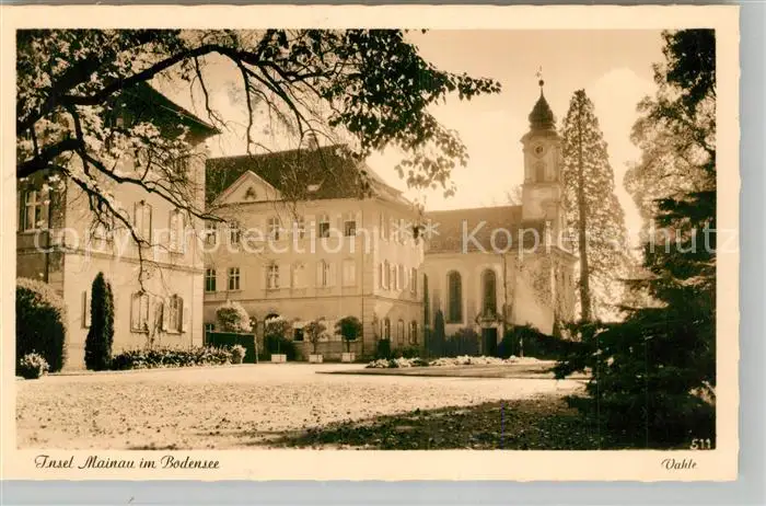 Insel_Mainau Schloss Kirche Park Insel Mainau postalisch gelaufen 1951 Erhaltung siehe scans [FriedD77] Frierer