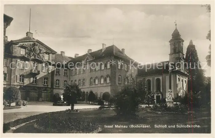 Insel_Mainau Schloss Schlosskirche Insel Mainau postalisch nicht gelaufen 1921-1965 Erhaltung siehe scans [KathaD81] Kathoren