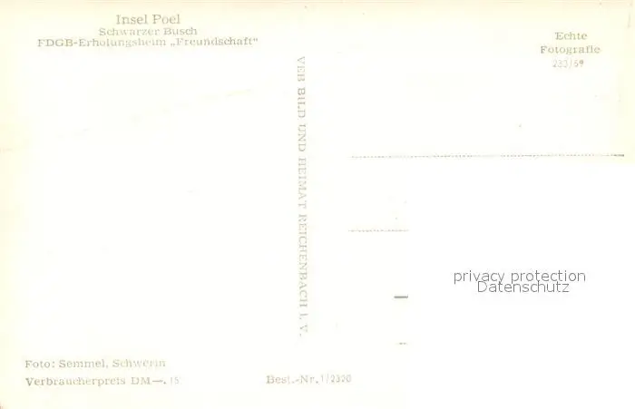 Insel_Poel Kategorie Alte Ansichtskarten Postkarten bx67372 Insel_Poel Schwarzer Busch FDGB Erholungsheim Freundschaft Insel_Poel postalisch nicht gelaufen 1959 Erhaltung siehe scans [FriedD77]