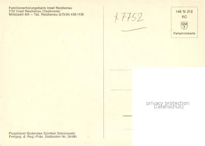 Insel_Reichenau Familienerholungsheim Fliegeraufnahme Insel Reichenau postalisch nicht gelaufen nach 1965 Erhaltung siehe scans [FriedD77] Frierer