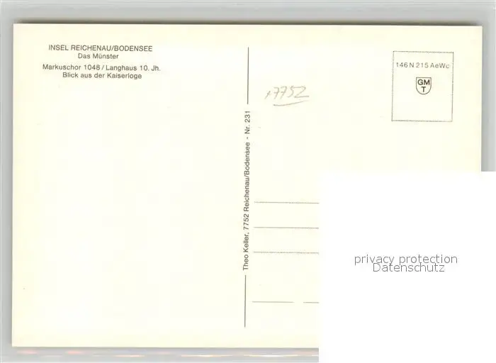 Insel_Reichenau Muenster Innenansicht Markuschor Langhaus Kaiserloge Insel Reichenau postalisch nicht gelaufen 1921-1965 Erhaltung siehe scans [FriedD77] Frierer