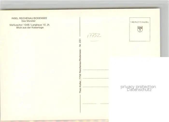 Insel_Reichenau Muenster Markuschor Landhaus 10. Jhdt. Blick aus der Kaiserloge Insel Reichenau postalisch nicht gelaufen 1921-1965 Erhaltung siehe scans [FriedD77] Frierer